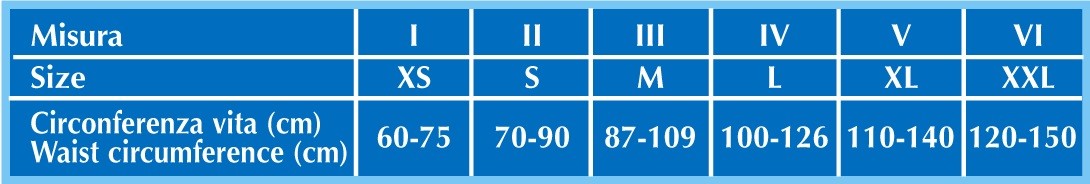 Cinture elastiche formate dall’unione mediante cucitura di 4 strisce di speciale tessuto elasticizzato anatomicamente sagomato, dotate di ampio pannello adesivo regolabile foderato in puro cotone che le rende particolarmente indicate quali ausilio post parto e post operatorio.