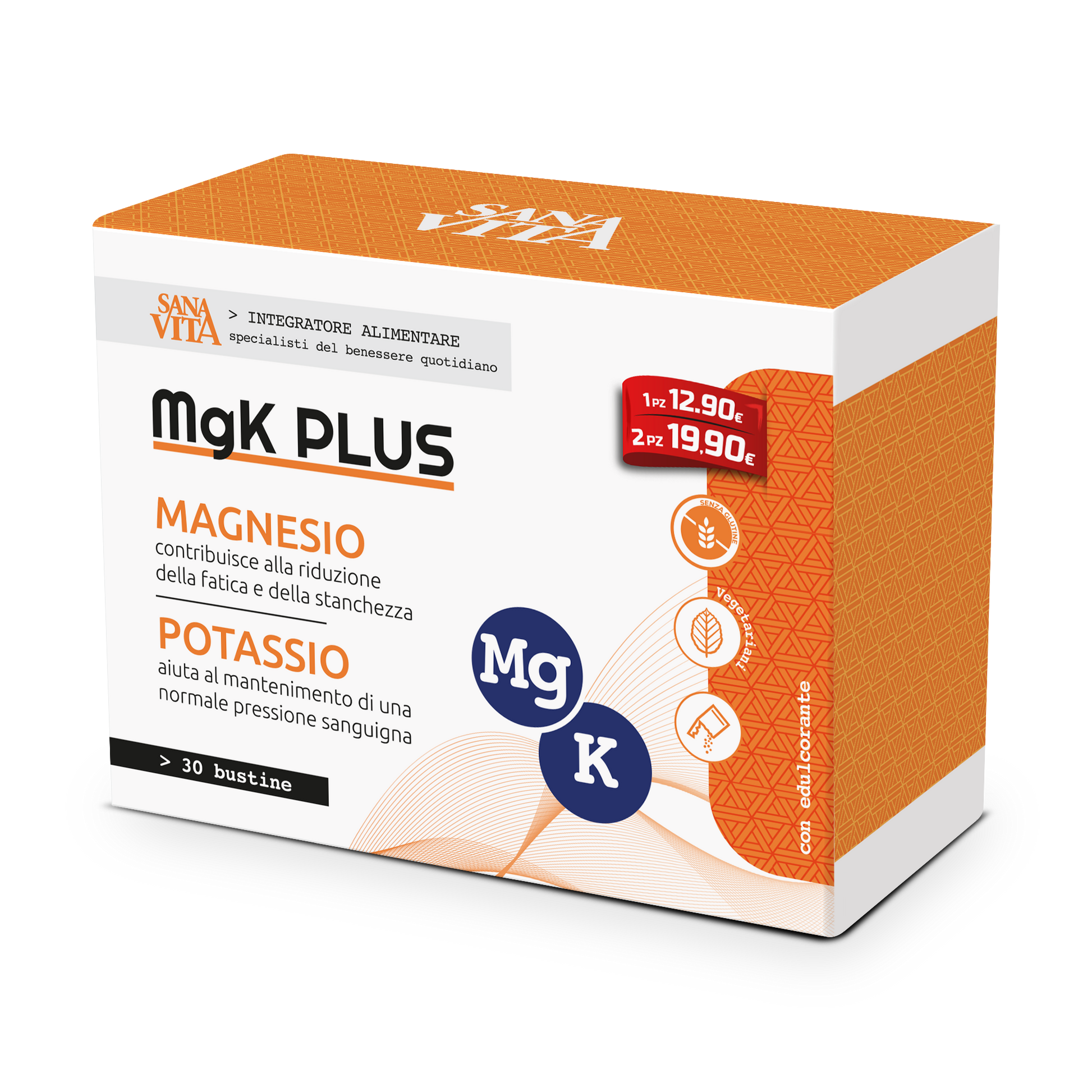 Sanavita MgK Plus è un integratore alimentare a base di Magnesio e Potassio.