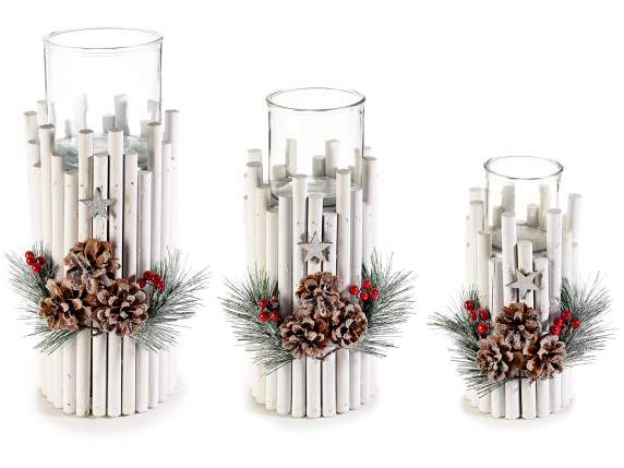 Set 3 centrotavola con portacandela vetro e decorazioni